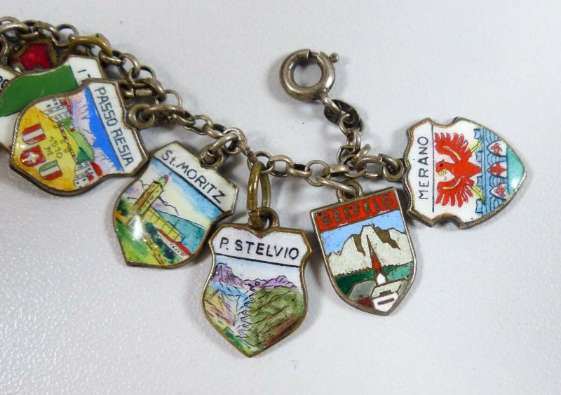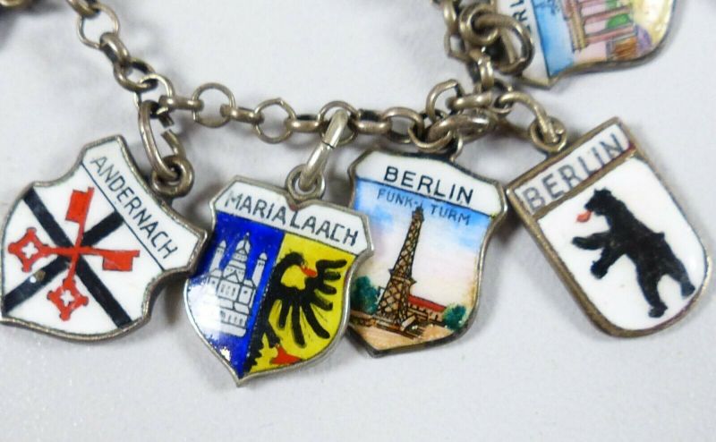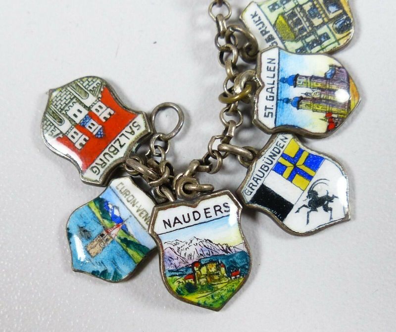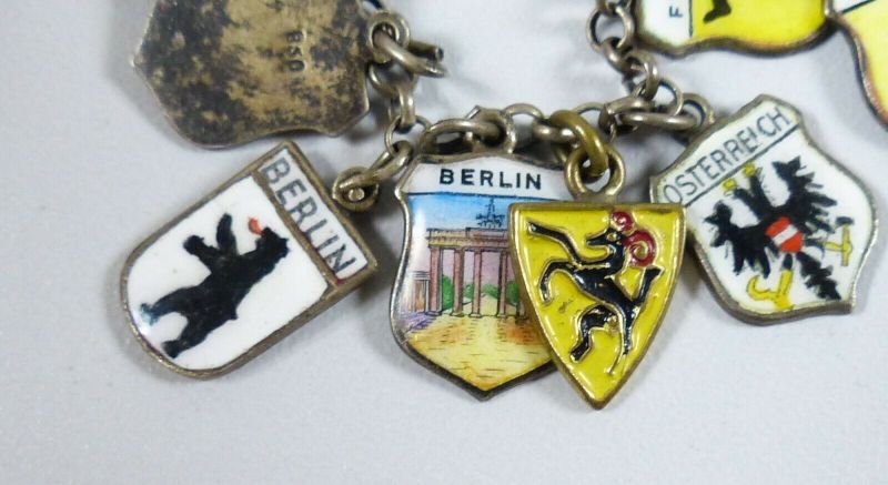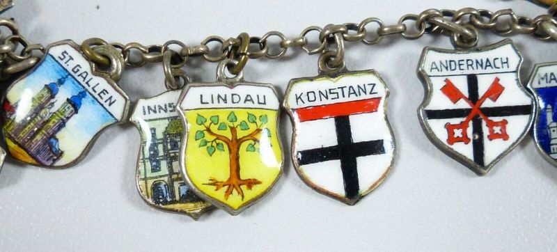 Bezaubernd nostalgisches bettelarmband 15 wappen anhänger 835er silber emaille. Preisvorschlag senden altes bettelarmband aus 835 silber 60er jahre. Altes bettelarmband silber.