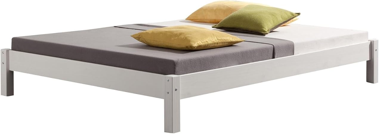Preiswertes bett genf aus weiß lackiertem kiefernholz.