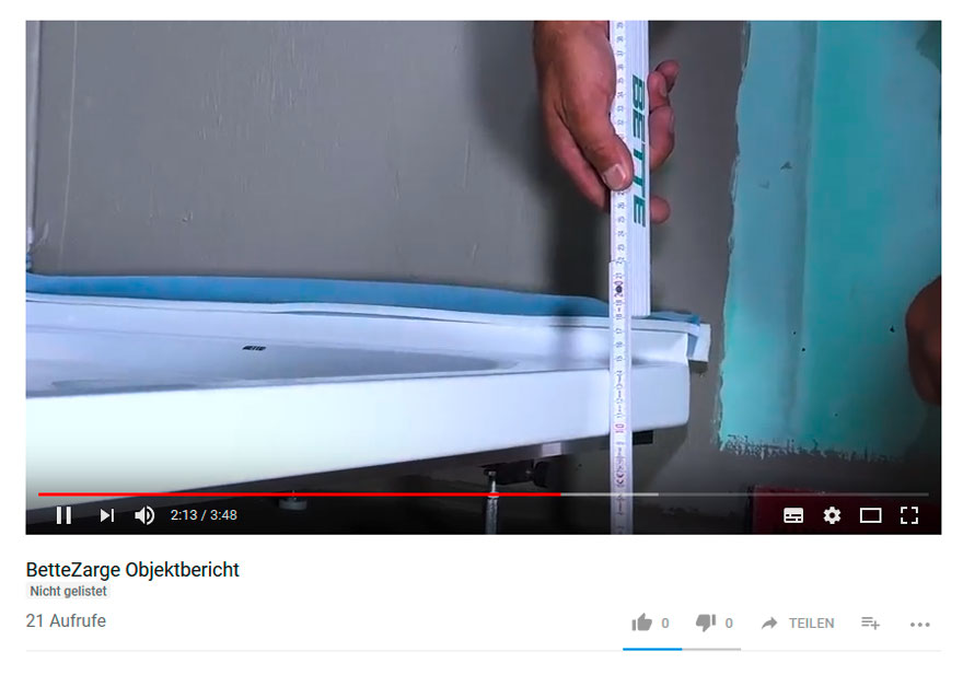 Bette is a german family run company. Wir empfehlen die zarge um 10 mm zurückspringen zu lassen. Baths shower trays and shower areas are given a 35mm upturn in glazed titanium steel that is simply tiled over during installation and connected to the wall.