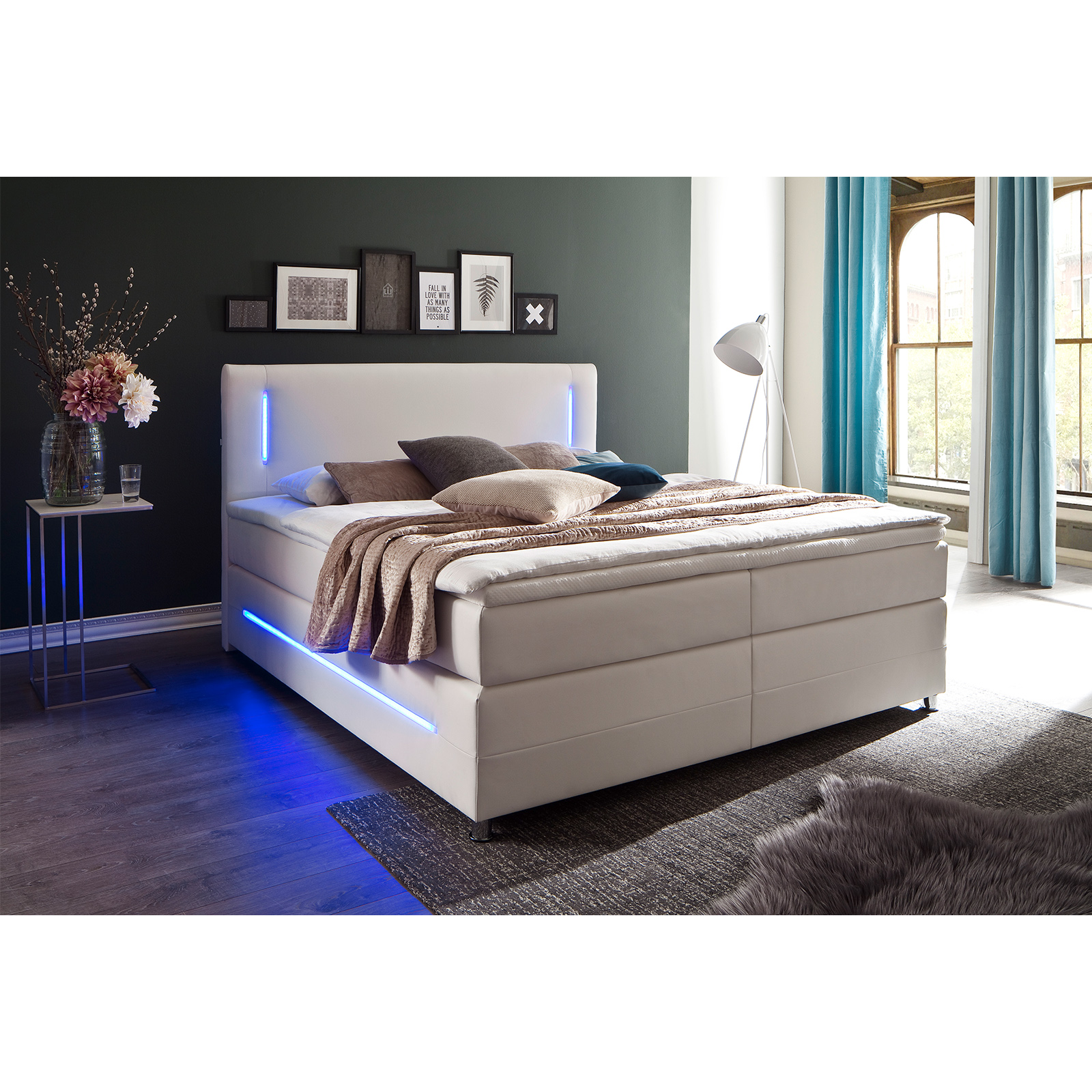 Artlife boxspringbett norfolk 180 x 200 cm led licht kopfteil matratzen topper 66 cm komforthöhe bett aus kunstleder holz weiß 4 7 von 5 sternen 8 749 00 749 00.