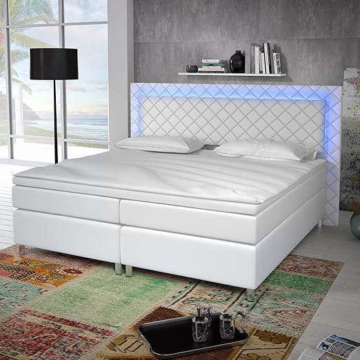Arvada 180x200 cm boxspringbett bett inkl bettkasten. Boxspringbett 180x200 doppelbett designerbett boxspring bett hotelbett led weiß. Uvp bisheriger preis eur 729 90.