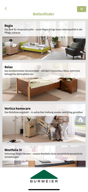 Burmeier ist ihr spezialist für betten und möbel in der pflege zuhause und seit vielen jahren marktführer in deutschland. Unser ziel ist es pflegebedürftigen menschen und ihren pflegenden angehörigen das leben zu hause so leicht und angenehm wie möglich zu gestalten sowie selbstständigkeit und mobilität zu fördern. Burmeier möbel überzeugen durch langlebige eigenschaften und viele aufwendige features.