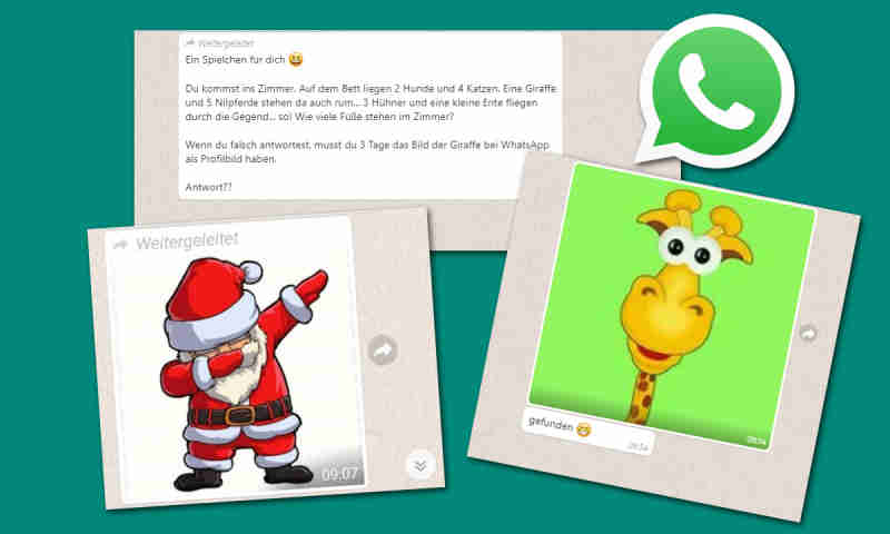 Auf dem bett liegen 2 hunde 4 katzen eine giraffe. Du kommst ins zimmer bei whatsapp. Wenn du falsch antwortest musst du 3 tage das bild vom weih nc htsmann bei facebook als profilbild haben.