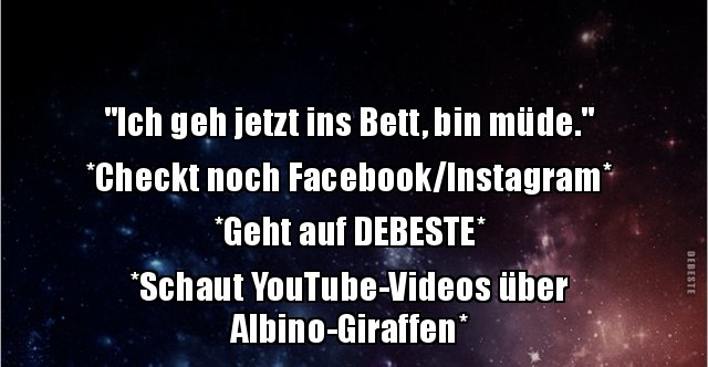 Ich fühle mich heute niedergeschlagen bin müde von meinem alltag der mit aufstehen morgens beginnt dann gehe ich zur arbeit bin den tag über beschäftigt komme nach hause esse zu abend surfe im internet bevor ich dann ins bett gehe. Besten bilder videos und sprüche und es kommen täglich neue lustige facebook bilder auf debeste de. To turn in coll ins bett gehen schlafen gehen to hop into bed coll ins bett hüpfen ugs to put sb.
