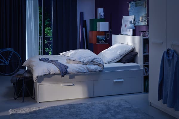 Bett mit bettkasten ikea betten house und dekor galerie 8nrq97prje. In der serie brimnes finden sich mehr solcher hilfreicher möbel die bei wenig platz eine gute figur machen. Wer auf kleinem raum wohnt muss schlau sein.