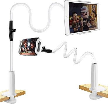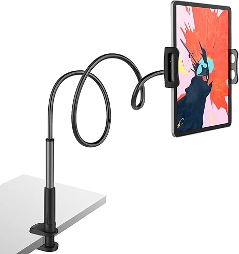 Soft pads stuck to the clamps. The gooseneck is 360º rotating steel pipe that make it adjustable. Flexible im bett verstellbarer ständer für pad mini 2 3 4 neu pad pro 2018 pad air switch galaxy tab und andere 4 7 10 5 zoll geräte.
