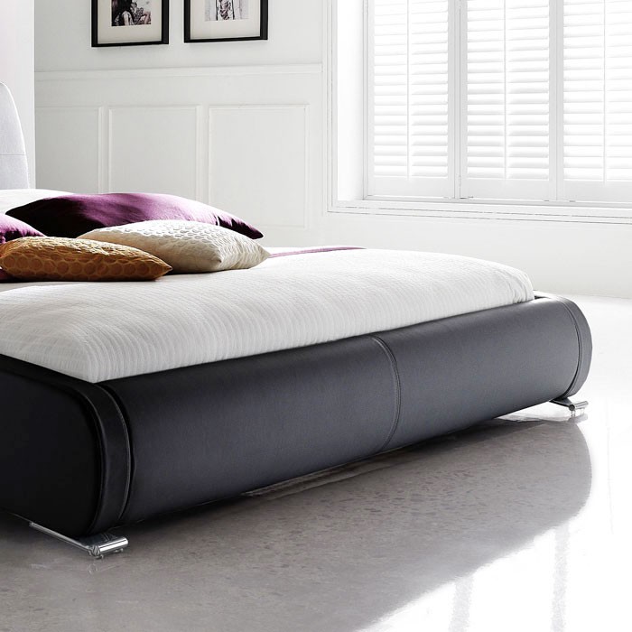 Straight bett mit bezug in chtleder. überzeugt durch minimalistisches design. Diese sind aus massivem poliertem chrom.