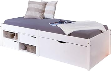 Bett mit schubladen einzelbett 90x200 cm bett gestell massiv holz kiefer wei ebay. Funktionsbett bali 160x200 bett mit viel stauraum und schubladen optimal für kleine schlafzimmer modernes stauraumbett aus kiefer massivholz preis inkl. Das kiefernholz ist weiß gewachst und andersfarbige absetzungen.