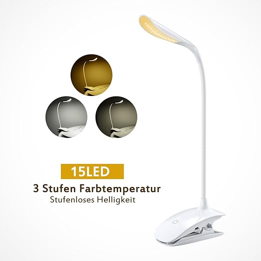 Klemmleuchte bett akku. Kaufen sie immer sicher auf amazon de. Habe sie am bett angebracht der touch schalter ist leicht zu finden und da sie am ersten klick nicht so hell ist auch sehr angenehm 0 kunden empfanden diese produktbewertung als hilfreich. Am regelbrett an der tischkante am bettgestell und und und lassen sie ihre fantasie spielen und testen sie es selbst.