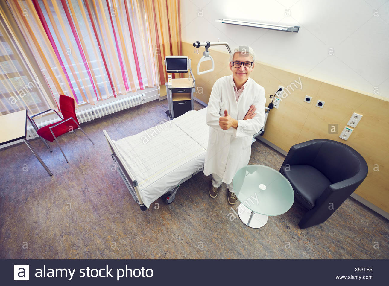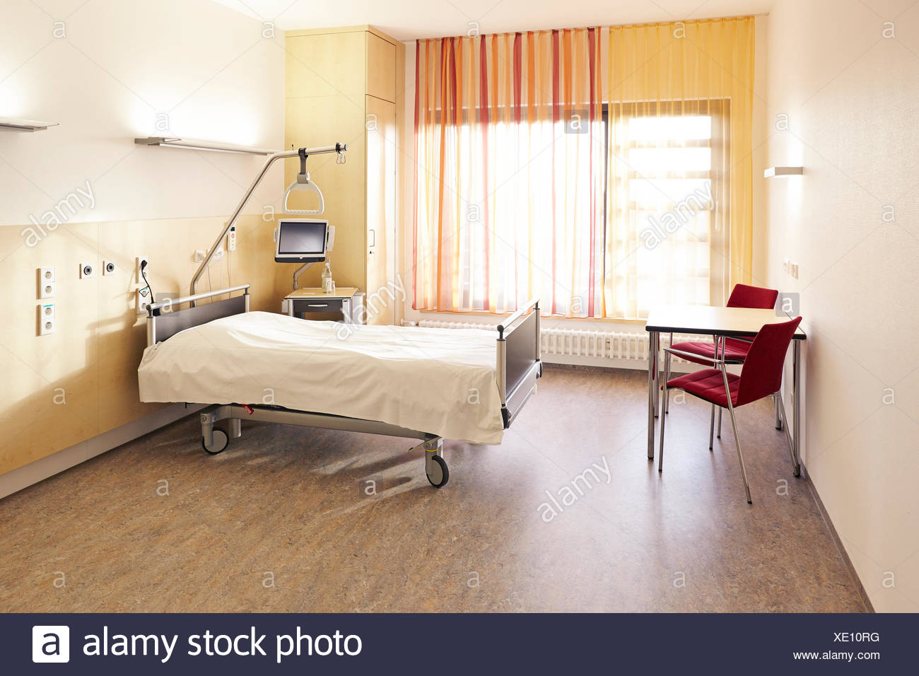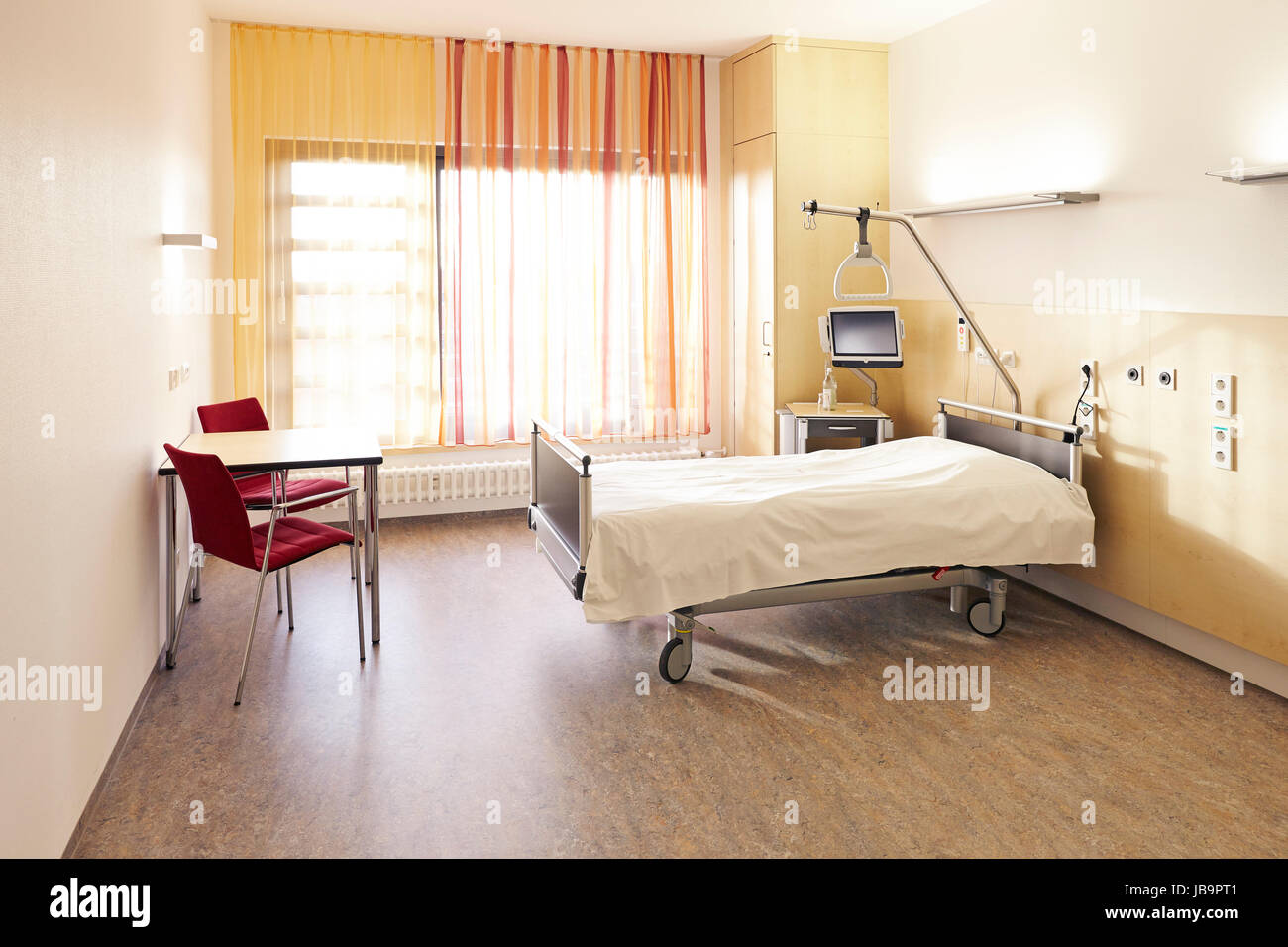 Krankenzimmer im krankenhaus mit bett und tisch. Auf messers schneide frank oliver bootz r ist mit ach und krach einem anschlag und somit dem tod entronnen. Aus vereinigte staaten von amerika.