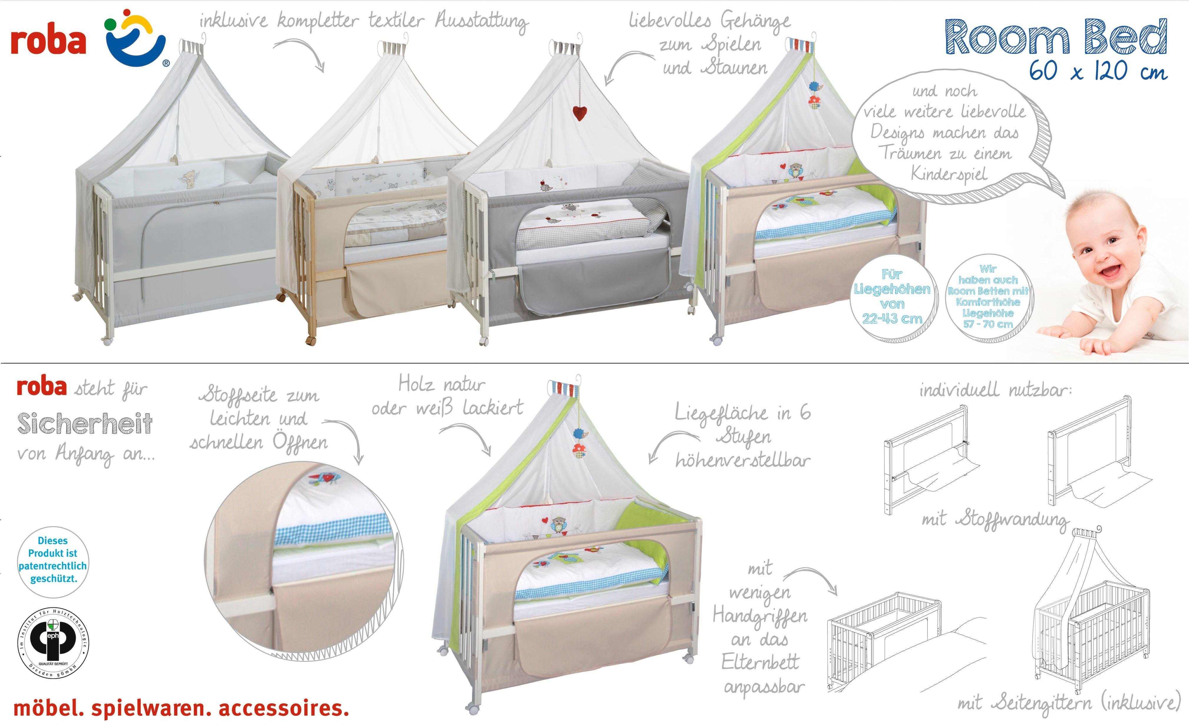 Das wird durch ein einfach zu handhabendes schraubsystem gewährleistet. Mit dem roba beistellbett inklusive ausstattung holen sich eltern ein flexibles bett für die ersten lebensjahre ihrer kleinen nach hause. Bei dem roba room bed handelt es sich um ein tüv geprüftes funktionsreiches sowie hochwertig verarbeitetes beistellbett dessen liegefläche 6 fach höhenverstellbar ist.