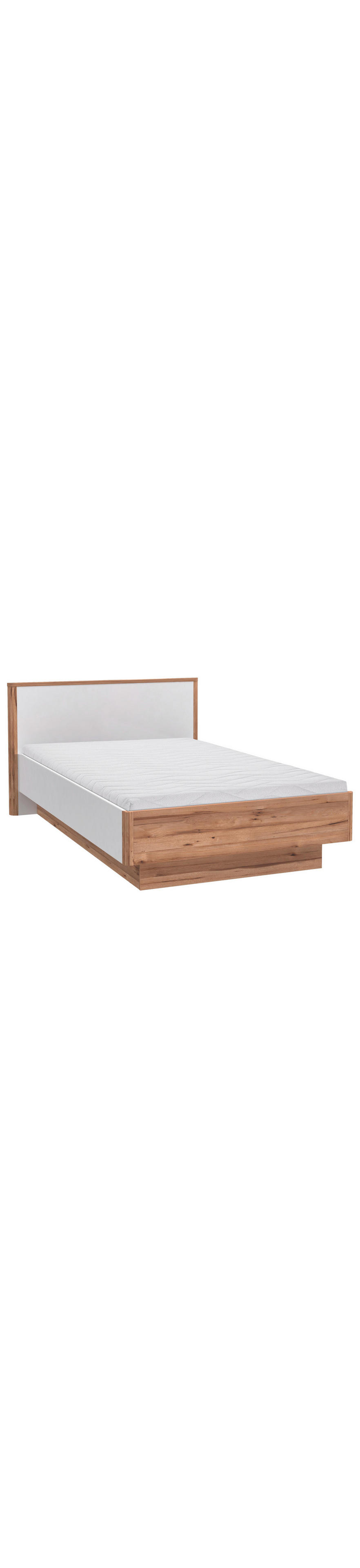 120 x 200 cm in weiß ist ideal für den kombinierten wohn und schlafbereich in kleinen wohnungen oder wg zimmern die farbgebung in eichefarben strahlt natürlichkeit aus während die absetzung in weiß modern wirkt.